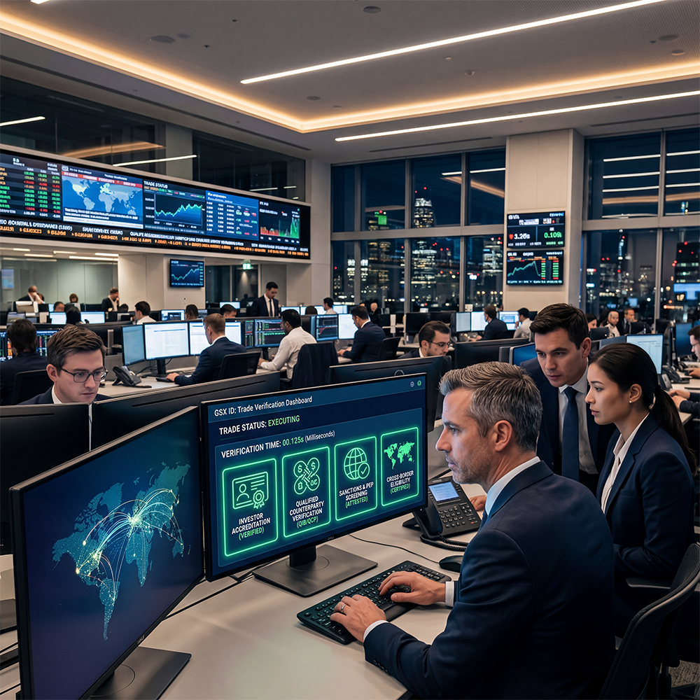 Capital markets require fast, accurate counterparty verification for every trade. GSX ID provides the credential layer that makes institutional identity verifiable at trade speed.